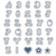 Fun navy blue colour font typography monogram text capital letters alphabet sticker pack for monogramming, personalizing, customizing, note writing, journals, notebooks, and more. This set also includes an exclamation point, heart, flower, and star.