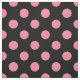 Swirly pink polka dots on black background fabric