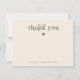 Cute and simple wedding thank you note card featuring swirly retro typography text that says "thank you" with a heart. Add your names at the bottom. The colour is in sage green.