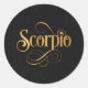 Swirly Script Zodiac Sign Scorpio Gold on Black Classic Round Sticker