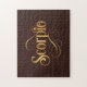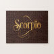 Swirly Script Zodiac Sign Scorpio Gold on Leather Jigsaw Puzzle
