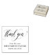 Maple wood art stamp with your names written in an elegant font beneath a beautifully swirly calligraphy script reading thank you.