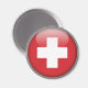 A fridge magnet featuring the Swiss Flag - white cross on red background.