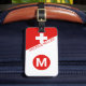 Exude timeless sophistication with this typography design evoking the essence of the Swiss flag. A refined duo-tone pattern coupled with personalized monogrammed initials, tailored for modern travel luggage tags designed for men. An excellent gift choice for fathers, brothers, husbands, and colleagues. Embrace the iconic red and white hues, reflecting the noble and classic Swiss-inspired style.
