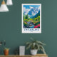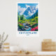 Embrace the breathtaking majesty of the Switzerland Alps with this captivating travel poster, which beautifully captures the stunning alpine landscape. The Alps, renowned for their towering peaks and pristine beauty, are a paradise for nature lovers and adventurers alike.