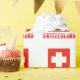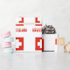 The Swiss Flag is a red square with a white cross in the centre. It shows in this design with the word SWEDEN below, in blue, snow capped letters. Sharing your heritage with this gift wrapping paper.