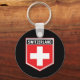 The national flag of Switzerland is infused into a shield shape that also has the country name set above the flag.