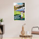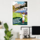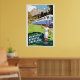 Travel poster showing a girl waving to passengers on train going past a mountain village in Switzerland. The aspect ratio of the image is 2:3. Please note that our restored posters are the best on Zazzle.
