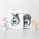A powerful swordfish jumping out of a blue wave. The wave has a light blue inner for a monogram. The “M” is short for monogram and can be customized to suit your needs.