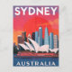 Capture the iconic beauty of Sydney, Australia, with this bold and vibrant travel postcard. The striking illustration features the magnificent Sydney Opera House set against the city's modern skyline and a dramatic red and orange sunset. The clear, block lettering declares "SYDNEY AUSTRALIA" at the top and bottom. This card is perfect for travel enthusiasts, architecture lovers, or anyone who appreciates retro-style posters and wants to send a unique, colorful greeting from down under.