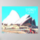 Travel poster featuring original photography of famous Sydney Opera House building architecture icon in Sydney Australia with a aqua blue shade of sky. Australian travel print. Funky modern colours.