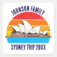 Personalized Australia vacation sticker featuring the Sydney opera house in front of an Australian sunset above cool blue water. Cute custom family trip keepsake.