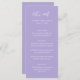 Modern wedding menu featuring a contemporary typographic design with "let's eat" in elegant script typography. Below are your event details in a your names, wedding date and menu in a simple and minimal layout. The colour theme is periwinkle purple and may be changed the design editing tool.