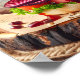 Experience the sizzle of Sydney with this sensational Outback Burger. A juicy kangaroo beef patty, grilled to perfection, is layered with a fried egg, tangy beetroot slices, crispy bacon, and a dollop of smoky barbecue sauce, all nestled inside a soft damper roll. A miniature Australian flag adds a touch of Australian flair, while a backdrop of the Sydney skyline completes this authentic Australian culinary creation.