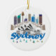 Artistic render of Sydney's signature skyscrapers rising behind the iconic Harbour Bridge and Opera House, with multi-coloured sailboats adorning the foreground.