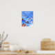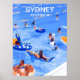 Travel poster print of Sydney Summer with people swiiming at the pools in an arty modern colourful style of travel art print. Blue sky and people swimming on a hot Summer's day in the city of Sydney, Australia.