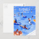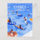Travel print of Sydney Summer with people swiiming at the pools in an arty modern colourful style of travel art print. Blue sky and people swimming on a hot Summer's day in the city of Sydney, Australia.