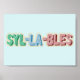 I taught the graphic illustration of the word syllables split up into its phonetic groups. Syllable is split into three syllables. A design with a skull, English language theme for teachers or students.