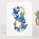 Symbol infinity of gold, decorated with realistic blue butterflies morpho on a white background. Design with butterflies. Morpho. Design with blue butterflies morpho.