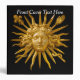 Symbol of Louis XIV the Sun King (Roi Soleil) on the golden gate of Chateau de Versailles with black background