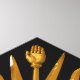Symbol of Louis XIV the Sun King (Roi Soleil) on the golden gate of Chateau de Versailles with black background