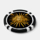Symbol of Louis XIV the Sun King (Roi Soleil) on the golden gate of Chateau de Versailles with black background
