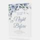 La nuit précédente, signe de répétition mariage, script simple bleu poussiéreux d'aquarelle bleu mariage thème floral. Le texte et les couleurs peuvent être modifiés.