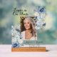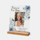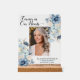Beau design floral bleu et blanc "Forever in Our Hearts" photo keepsaké.