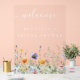 Ce design allie élégance et fantaisie, alliant un texte moderne minimal à une rangée de fleurs sauvages d'aquarelle délicats, parfaits pour les douches nuptiales d'inspiration boho.
