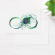 Le symbole de l'infinity with a bright, green, artistic peacock feather on a white background. Tattoo style.