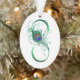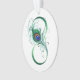 Le symbole de l'infinity with a bright, green, artistic peacock feather on a white background. Tattoo style.