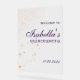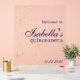 Une superbe robe violette de Glam Quince gothique, parfaitement complétée par un signe acrylique chic et moderne. La robe violette sombre et glamour est idéale pour une fête de Quinceañera, imprégnée d'une élégance d'inspiration gothique. Un signe acrylique accrocheur ajoute une touche personnalisée et contemporaine à la décoration de l'événement, en s'associant harmonieusement avec la teinte violette profonde de la robe.