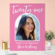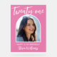 Une photo moderne simple signe 21ème anniversaire avec votre photo personnalisée et détails dans un élégant design minimaliste de couleur rose et blanc.