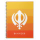 Écrivez vos notes en style avec ce carnet personnalisé de design graphique en couleurs de blocs avec le symbole Sikh Khanda.