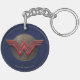 Regardez ce symbole Wonder Woman en relief en rouge, posé sur un disque de cercles concentriques dorés.