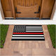 Symbolic Thin Red Line US Flag graphic design on Doormat