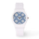 Symmetric Orange Flower Tiled Pattern on Blue Watch