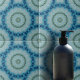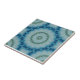 This ceramic tile features a complex and symmetrical kaleidoscopic pattern that radiates a harmonious blend of soft blues and greens. The design is reminiscent of blooming flowers and rippling water, creating an aura of serene beauty. The tile’s pattern is layered, with each layer showcasing distinct shapes and designs that contribute to the overall complexity. The outer layers are darker in shade compared to the inner layers, which are lighter. This contrast creates a sense of depth in the design. This ceramic tile doesn’t just serve as a functional element, but also as an artistic expression, adding a touch of elegance and tranquillity to any space it adorns.