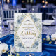 Set a sophisticated tone for your special day with this modern romantic design, blending soft blues, elegant swans, and geometric luxury for a timeless look.