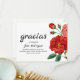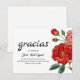 Carte de remerciement de funérailles espagnole à envoyer à la famille et aux amis pour montrer votre appréciation pour leur amour et leur soutien pendant votre période de deuil. Avec des fleurs rouges sur fond blanc et du texte noir, qui peut être personnalisé.
