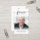 Sympathie funéraire Photo Forever in Our Hearts Cross Prayer Card. Gardez la mémoire d'un être cher proche avec cette carte de prière personnalisée avec une photo chère, le titre FOREVER IN NOS COEURS, le nom et les dates sur le devant et une prière modifiable ou votre hommage de souvenir accentué d'une simple croix. Avec son design classique simple mais élégant, noir et blanc et son écriture moderne avec des swashes, il fait un souvenir significatif à partager à un enterrement, service commémoratif ou Célébration de la Vie et offre le confort et un hommage durable à la famille et aux amis. Sa petite taille portable de 3,5x2" (taille porte-monnaie) permet aux proches de la porter avec eux pour rappeler la vie et l’esprit de l’être aimé. La personnalisation rend chaque carte unique.