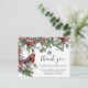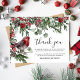 Un remerciement funéraire sur une carte d'invitation plate est une façon simple de remercier ceux qui vous ont montré le confort pendant votre deuil. Cette carte d'appréciation sympathique présente des fleurs rustiques d'aquarelle et du feuillage, un robin festif, des flocons de neige et un élégant modèle texte facile à personnaliser.