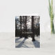 Beautiful sympathy card, with In Sympathy on front and inside message: "Expressing support to you during the time of grief and holding you in our hearts." Messages can be edited before purchasing. The photograph features a timeless scene of tall trees in the woods in winter. The ground is covered in snow, and the afternoon sun is shining through the trees, casting long shadows. Numerous bare tree branches create patterns in the light and shadow. Colour photograph, with soft blue sky.