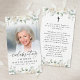 Celebrate the life of your loved one with this custom personalized prayer card featuring one cherished photo, the title CELEBRATING THE LIFE OF NAME and dates and an editable prayer your can change to a heartfelt remembrance message or meaningful poem, quote or bible verse accented with a simple cross and soft watercolor white flowers and greenery. With its simple yet classic design and modern handwritten script typography, it makes a thoughtful keepsake to share at a Celebration of Life, funeral, memorial service, visitation or wake and offers comfort and a lasting tribute for family and friends. Its small and portable size of 3.5x2" (wallet-sized) makes it convenient for loved ones to carry it with them as a reminder of your loved one’s life and spirit. Personalization makes each card unique.