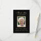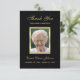 This 3.5 x 5 inch flat card features a beautiful photo of your loved one as the focal point. Your photo is surrounded in a golden border with a black background. The words "Thank you for your sympathy" appear above the photo. The name of your loved one and dates appear right below the photo. On the back, is a thank you for your sympathy message. In addition, you can customize the back with your family name. This sympathy thank you card is a lovely way to thank everyone who expressed sympathy during a very difficult time. Copyright sympathythankyou