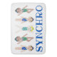 Illustration features three girls in synchronized swimming costumes, and SYNCHRO in a blue font. Ideal for your favourite synchro swimmer!