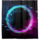Synthwave Vaporwave Retrowave Glitch Circle with blue and pink glows with smoke and particles on laser grid space background.