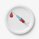 A syringe of blood with a red drop of blood at the end. This design looks really effective on these Paper Plates
