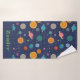 Un système solaire moderne et amusant motif avec des planètes colorées, des étoiles et des illustrations solaires contre un arrière - plan bleu foncé. Cette conception peut être personnalisée avec un nom ou monogrammé avec des initiales.