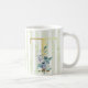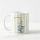 Letter T, gold initial with blue watercolour foliage blue and white stripes initial mug. © Julie McIver
